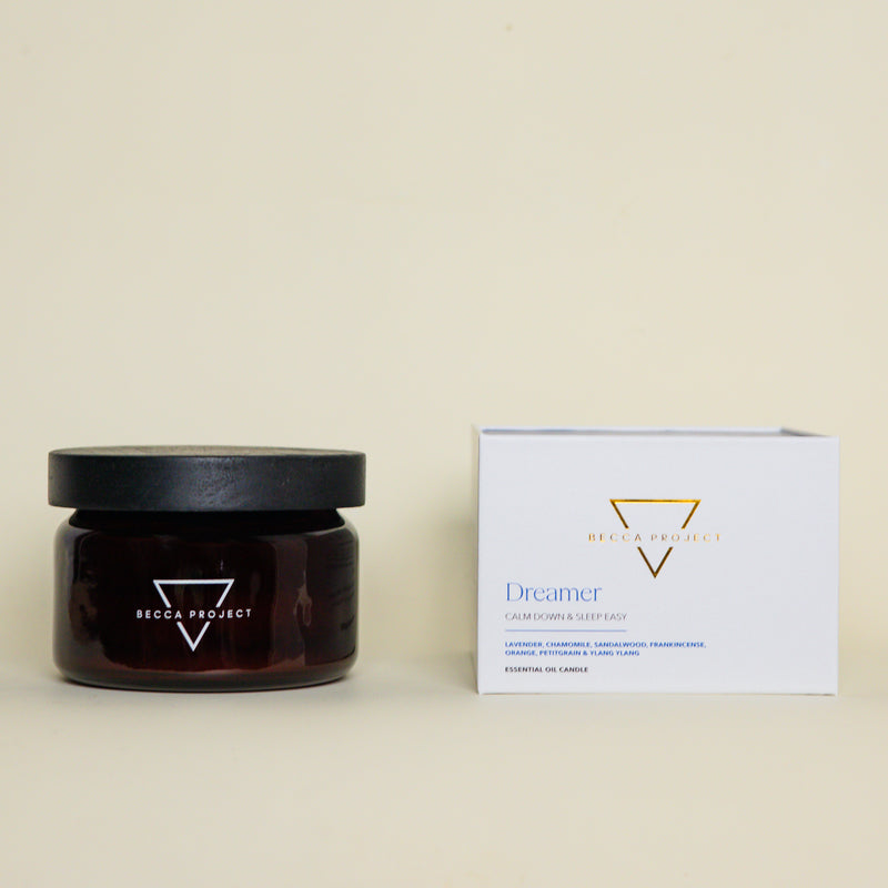 This luxurious large Dreamer candle is a musky blend of LAVENDER, CHAMOMILE, SANDALWOOD, FRANKINCENSE, ORANGE, PETITGRAIN & YLANG YLANG. It is the best way to calm your body and mind and prepare yourself for a restful nights sleep.
